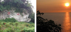 山頂には珊瑚礁を用いて作られた福徳宮の他、巨大な岩礁-飛来石を見られます。